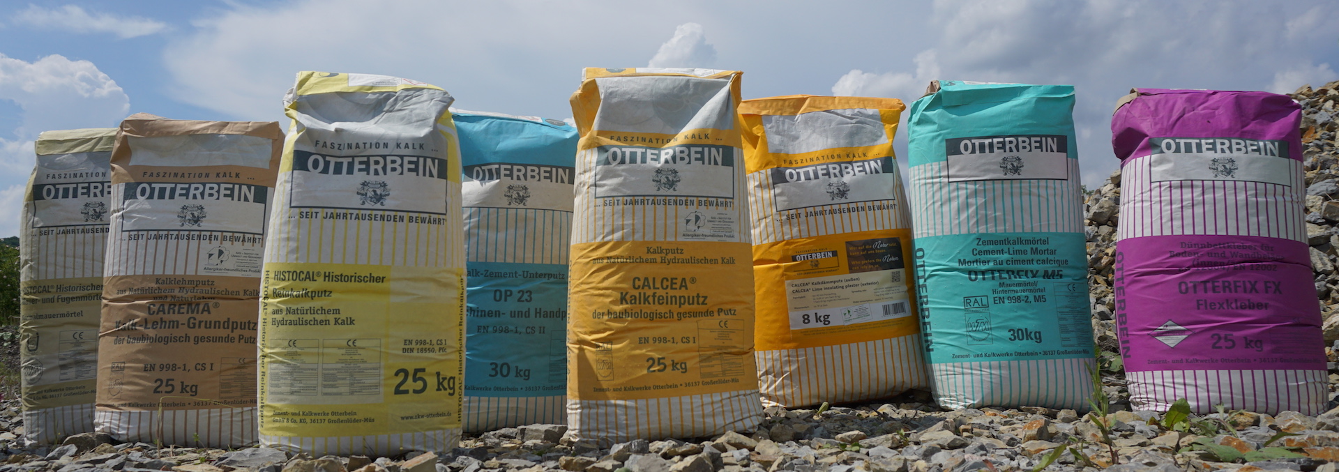 Heute stellt OTTERBEIN gemäß dem Leitgedanken „Wir bringen Steine zum Leben“ am Standort Großenlüder-Müs aus dem natürlichen Rohstoff Kalkstein eine umfassende, qualitativ hochwertige Produktpalette her. Das Sortiment umfasst über 100 verschiedene Produkte in den Sparten Zement, Kalk, Putz und Mörtel sowie mineralische Anstriche für unsere Kunden in unterschiedlichen Anwendungsgebieten: